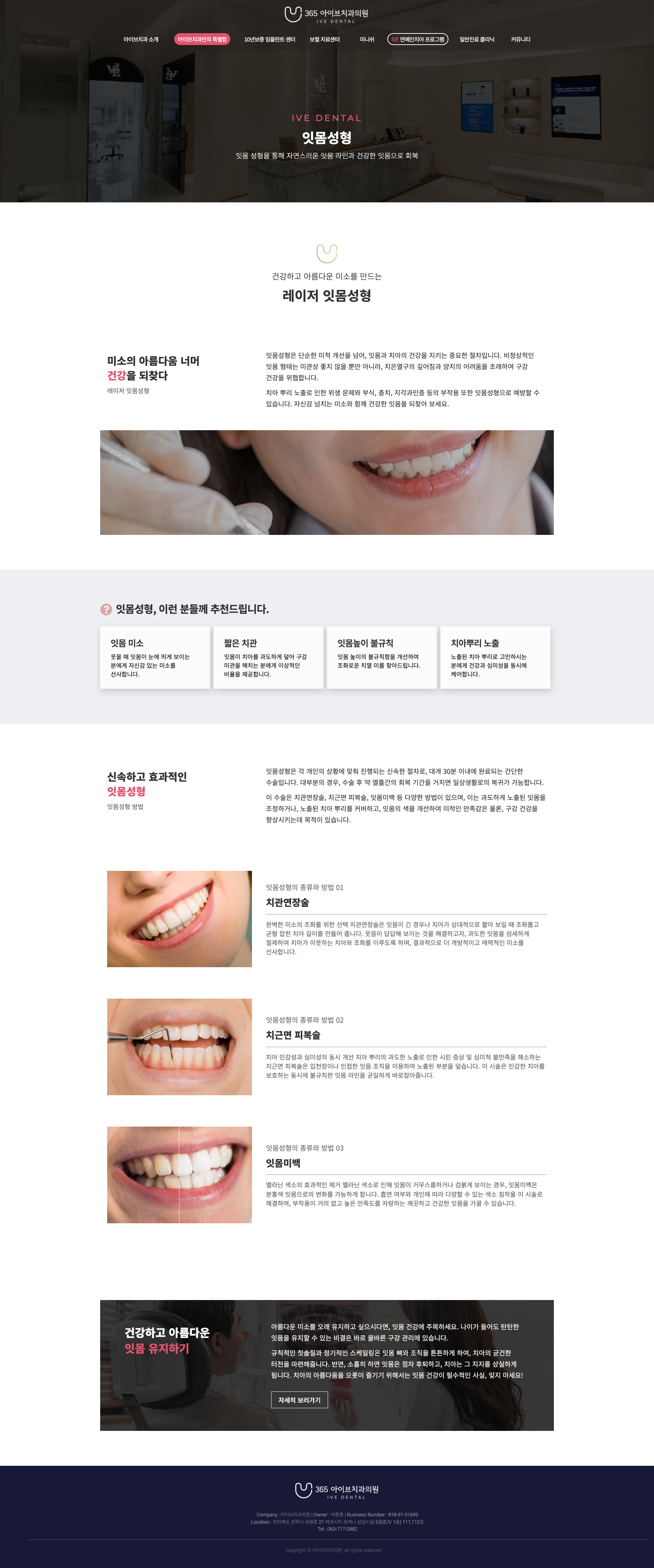 다양한 기능들은 사용자의 편의성을 높이지만, 결국 섹션이 병원의 이야기를 전달하는 주요한 도구입니다. 하나의 섹션을 만들더라도, 전문가들이 철저한 기획과 디자인 아래 완벽한 퀄리티를 보장해야만, 병원이 목표로 하는 마케팅 효과를 극대화할 수 있습니다.